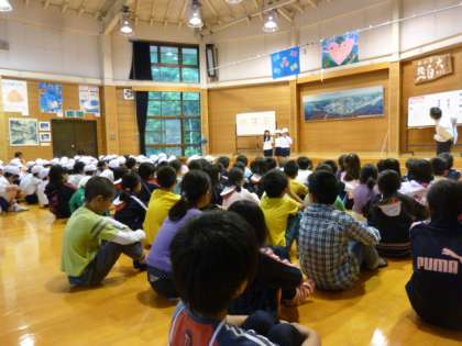 まずは,同じ日程でみさきの家で活動している小学校と一緒に,