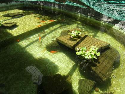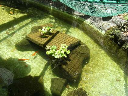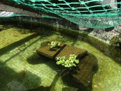 浮草で池の金魚が喜んでいます。