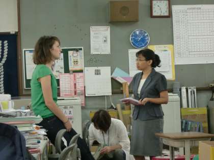 今日はサラ先生の外国語活動の授業やプールの指導を見学してもらいました。国が違えば,教育事情も異なります。彼女にとっては驚きの連続だったみたいです。