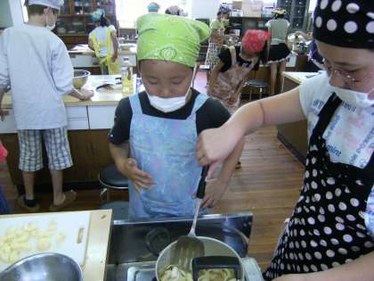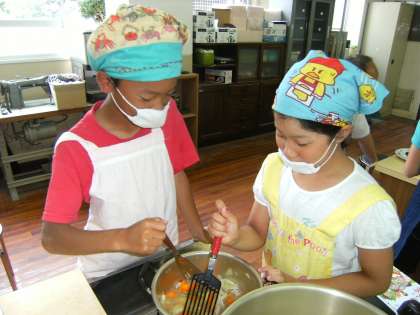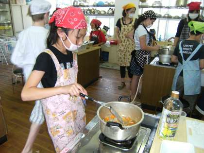 カレー作りで,お肉と野菜を炒めてから,水を加えて,柔らかくなるまでゆでていきます。ことことと時間をかけて煮ていきました。