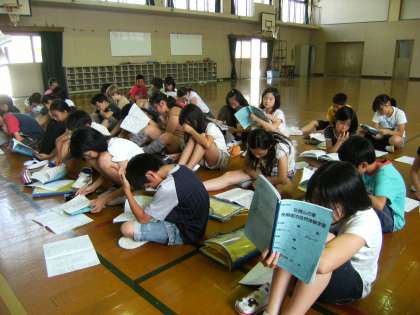 「山の家」の活動に向けて,いろいろと準備を進めています。5年生の児童の気持ちも高まっています。今日,キャンプファイヤーの全体練習をしました。キャンプファイヤーの時に歌う歌やフォークダンスの練習をしました。静かな活動・「エイッ」と盛り上がる活動のメリハリが素敵な5年生です。