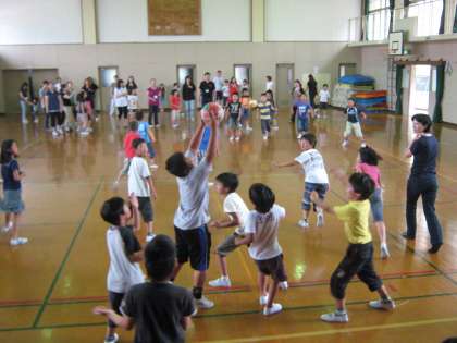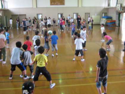 たくさんの保護者の方の参加があり,体育館のコートが人・人・人・・・で,しかも途中からボールが3つになり,大変盛り上がりました。