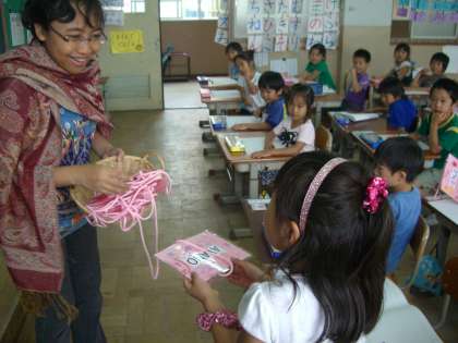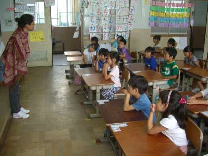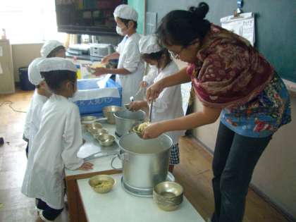 今日は,インドネシアから来られているニーマス先生と一緒に勉強しました。英語での自己紹介を聞いたり,ニーマスさんに話しかけたりと子どもたちは興味深々でした。「先生,牛乳飲むの初めてか聞いてみて。」「先生,インドネシアではごちそうさまってなんて言うのか聞いて。」など,ニーマス先生と仲良くなろうと一生懸命の子どもたちを見ているととても微笑ましかったです。