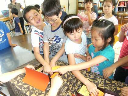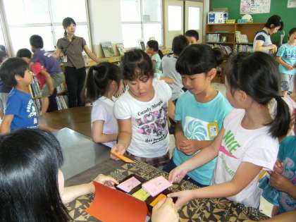 おはなしわくわくに参加した児童は,カードを自分の好きなハンコの所に提出します。選ぶ時の子どもたちの表情を見ると,とても楽しんでいるのがよくわかります。
