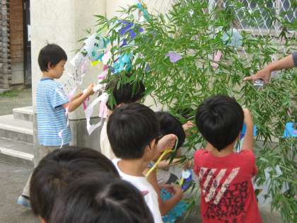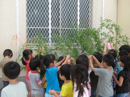 1年生が七夕飾りをしました。