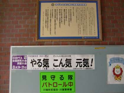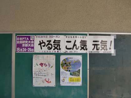 出来上がったばかりの京都市小学校PTA連絡協議会の今年度のスローガンを書いたポスターを今日2枚貼りだしました。