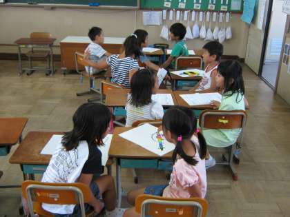国語の時間に,自分が考えたものを,友だちに伝える学習をしています。