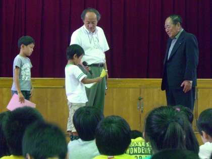 地域の方からジャングルジムを贈っていただき,1年生はそのお礼に手紙を書きました。「すてきなじゃんぐるじむをありがとう」「たいせつにつかいます」など,それぞれ習いたてのひらがなで一生懸命手紙を書きました。いよいよ月曜日から新しいジャングルジムで遊ぶ予定です。どの子もとても楽しみにしています。地域のみなさん,ありがとうございました。
