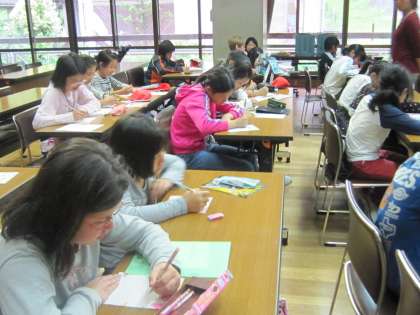 あいにくの天気で思っていた活動ができませんでした。朝は,5日目に書く予定であった「お家の人への感謝の手紙」を書きました。