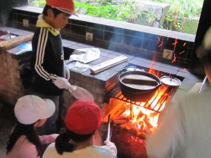 ほぼ時間どおりに完成で,食事係の「いただきます」でみんなで食べはじめました。