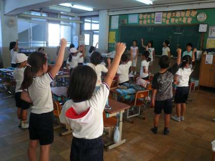 5・6年の係の子どもたちが,各教室へ教えに来てくれています。