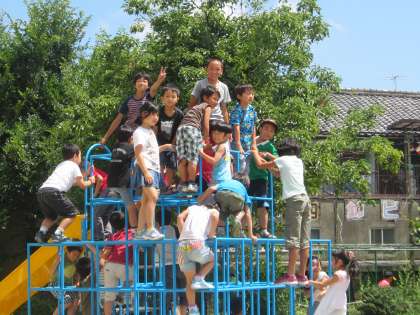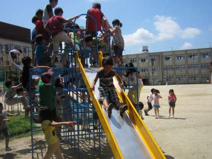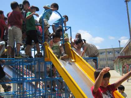いよいよ、ジャングルジムが使えるようになりました。待ちに待った子どもたちが一斉にジャングルジムに登り始め、うれしそうな顔をしていました。