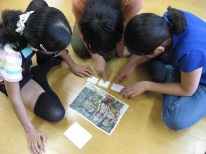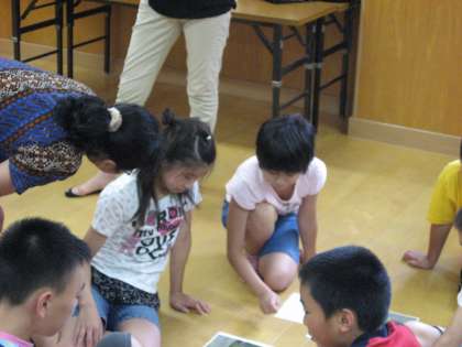 ニーマス先生は,ほとんどが英語です。だから子どもたちは,何を言っているんだろうといつも以上に聞き入っていました。中には,写真などを手がかりに考えてみたり,ニーマス先生が話している中で,「今の単語わかる!」といったようにそこからイメージしたりしていました。