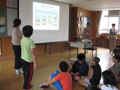 3・4時間目〜気候ネットワークの方に来ていただき、地球温暖化についてお話を聞きました。そのあと地球温暖化を進めないために私たちにできることは何かをクイズ形式で学習しました。