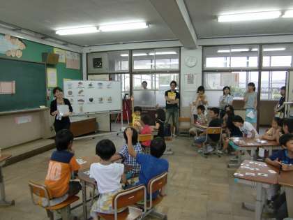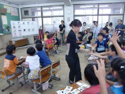3年生の英語活動の授業を見て,みんなで研究会を行いました。