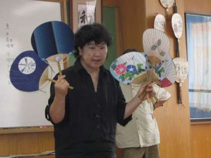 池田先生は,うちわの歴史や3大産地やその特色についてお話しくださいました。