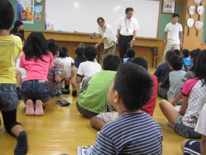 「うちわ」が,どうして「エコ」な生活に役に立つのか話をきいたり,柄のところが竹製の「うちわ」とプラスチック製の「うちわ」でのあおぎ比べもやってみたりしました。