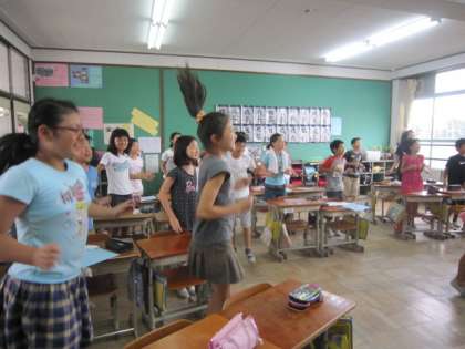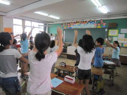 今日の昼学習は英語でした。5年生は "play tennis" "skate" "do kendo"などスポーツに関する言葉を練習していました。17日の2時間目にある全校英語「にこにこEnglish」の練習です。身振りをつけて、とても楽しそうでした。この笑顔できっと小さい学年をリードしてくれるのでしょう。楽しみです。