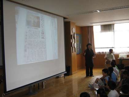 「うちわの風は,お母さんが,子どもにやさしい風を送り,その風が,蚊が近寄るのを妨げるのです。そして,環境の視点から,何れ土にかえる竹と和紙でできたうちわを届けようと活動を始めました」とお話をしていただきました。