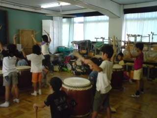 10月11日(日)の「今宮祭り」と10月16日(金)の「京大中央キャンパス祭09」が近づいているため,練習に励んでいます。同じ太鼓を打つのでも,体全体で打つのと,手先だけとでは,太鼓の音色も見た目の格好よさも違います。しっかりと,一音一音を大切に,みんなとの和を大切に演奏できるよう頑張っているところです。