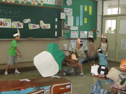 「とうとうかぶはぬけました」のところでは,本当にかぶがぬけたように,上手に劇をすることができました。