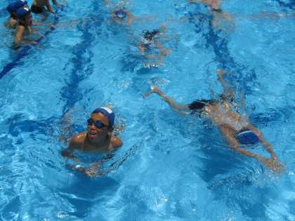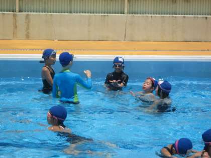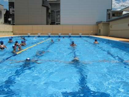 午前中から30度を超すような暑い一日でした。3時間目4時間目のプールには5年生の元気な声が響いていました。自分のめあてに沿って,記録にも挑戦していました。記録に挑戦するグループは,コースロープを張ってあるコースを,ひたむきに泳いでいました。
