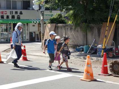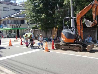 今日の工事区間は鞠小路の交差点から東側です。学校を出て鞠小路の信号を渡った所から片側車線の工事区間だったので,少し歩きにくかったかもしれません。