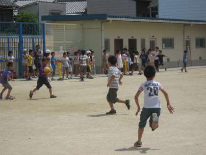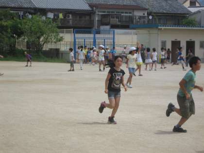 子どもたちはこの暑さの中でも,とっても元気です。運動場を走り回っています。今日は,運動委員会のイベントで,4年生の「けいどろ」大会?もありました。良く走っています。