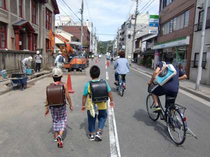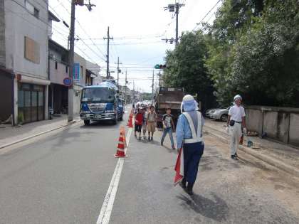川端通りから始まった東一条通りの水道管工事も鞠小路を越えて,地塩寮の前まで来ました。鞠小路より東側の東一条はガクンと狭くなりますから,しっかり気をつけないといけません。