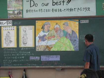 今日の授業は,単元「江戸時代の文化をつくりあげた人々」の「新しい学問である蘭学が広まった様子について話し合う」活動を通して,次のようなねらいを設定し,授業を展開しました。