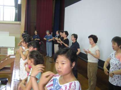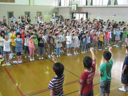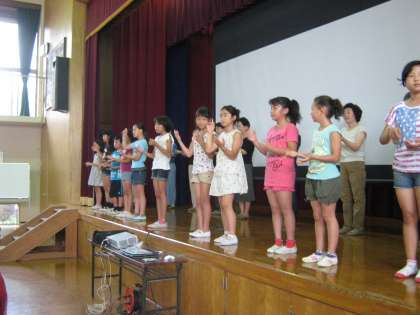 吉田民生児童委員の方に教えていただいて,今日は仕上げの練習でした。回数としては2回でしたが,子どもたちもしっかり覚えました。各学級で決めた夏まつり子ども実行委員のみんなもがんばっていました。夏まつりの当日も期待しています。
