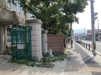 校門に覆いかぶさるように伸びていた桜の枝を少し剪定しました。