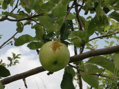 人間がおいしく食べるにはまだ青くて硬くてという状態ですが,このままでは鳥に全部献上することになってしまいそうです。