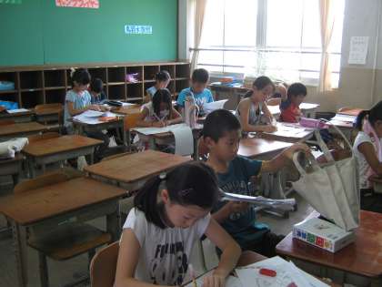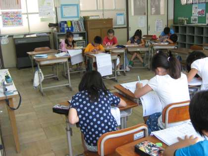 それぞれの学級で,夏の「学び」をがんばっています。教室に行ってみると,外のセミの声しか聞こえません。さすがです。