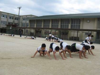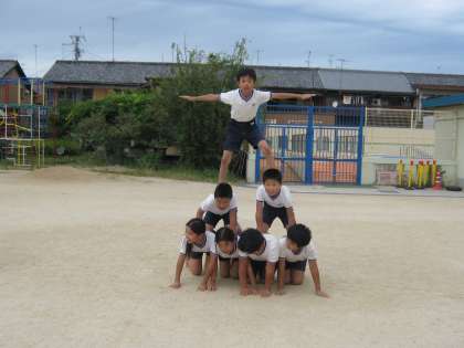 5年生・6年生全員で取り組んでいる組体操。5年生児童にとっては今まで先輩たちがやってきた組体操を実際に行って,その大変さを実感している今日この頃です。
