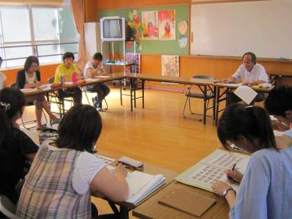 夏休みの水泳学習も今日で終わり、たくさんの学年・学級が登校日の活動を終えました。そんな中、教職員の研修会が本格的に始まります。普段では、なかなかじっくりと話し合えないようなことや、専門的なことなどを研修します。また、学校を離れて、他の場所で研修を受けることもあります。教職員も、子どもたちに負けずに鍛えています。