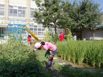 今朝も2年生の当番の子が学級園の水やりに来てくれました。