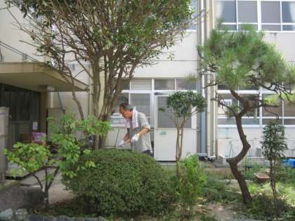 今日も校長先生が樹木の剪定をされていました。