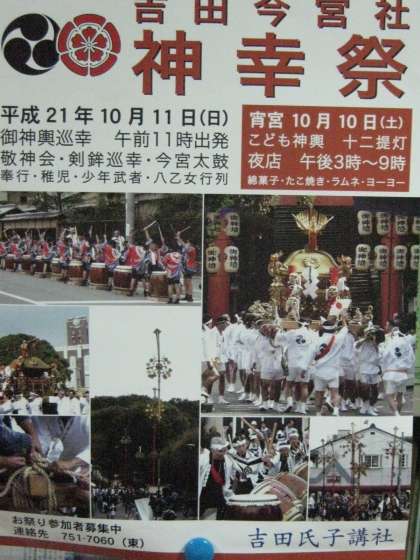 10月11日(日)は,吉田今宮社の神幸祭があります。例年,部活動和太鼓,剣鉾の子どもたちが,日々,練習してきた成果を発揮する日です。