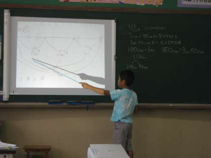 みんなに分かりやすく伝えらるよう一生懸命に自分の書いた図を使って説明をしました。また,子どもたちからは質問なども出ていました。