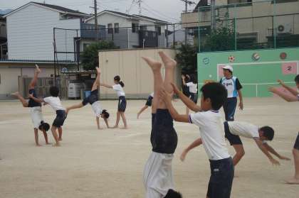 運動場での練習も今日が二日目。音楽に合わせてテンポよく技を決めていきます!見てください、この真剣な表情。