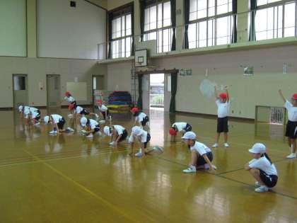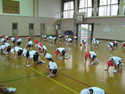 2年生は,今日から,入退場の練習を始めました。1組と2組が時間差をつけて入場してきます。また,踊りの中間で,1組と2組が入れ替わります。入れ替わるので,当日は,すべての子どもの頑張るところを見てもらえると思います。