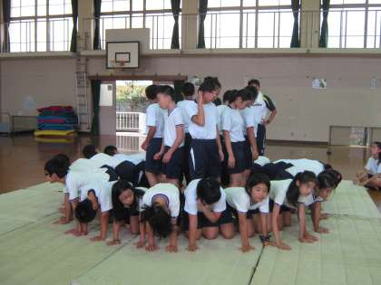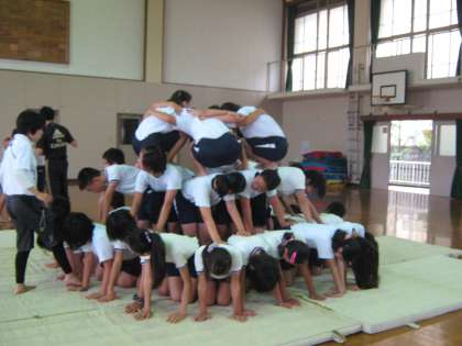 組体操の中での大技中の大技,タワーの練習が始まりました。全体で4段のタワーになる予定です。今日は,途中の3段までは順調にいきましたが,4段を積み上げようとしたところで,惜しくも成功とはなりませんでした。何度も練習してこそ成功の道が開かれる組体操です。