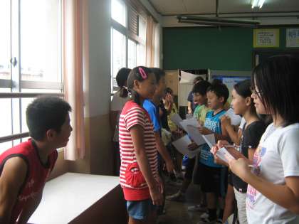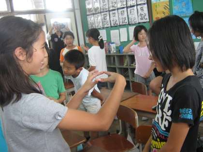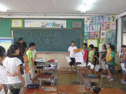 お昼の学習は「外国語」です。5年生の“What color do you like?”“What shape do you like?”などのインタビューに答えました。言葉だけでなく身振り手振りを使いながら好きなものを伝えたり,5年生の予想を超えた返答をしたりする子どももいました。最後は“See you!”と楽しく学習を終えることができました。