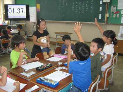 発表する前に,聞くときのあ(相手の目を見て),い(一生懸命聞く),う(うなずきながら聞く),え(笑顔で聞く),お(おしまいまで聞く)を確認しました。