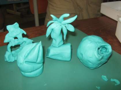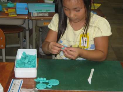 図工「クッキーやさんになろう」の学習で,粘土をちぎったり,切ったり,ねじったりして,おいしそうなクッキーをみんなで作りました。