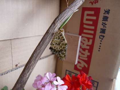 朝から何度か観察箱の中をチェックしていましたが,ツマグロヒョウモンが新たに成虫になっている姿はありませんでした。「そういえば,さなぎからかえるのはたいてい夜だから…という話をどこかでだれかから聞かされたことがあったなあ。」などと昔のことを思い返していました。