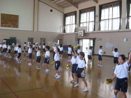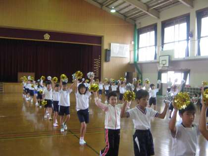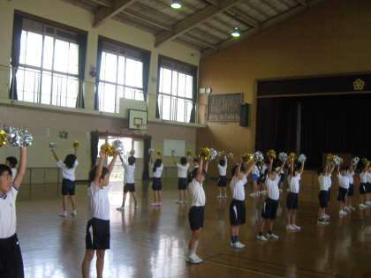 2年生のダンス練習は,金と銀のポンポンをつけて行いました。まるで,チアリーダーのようです。