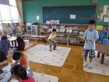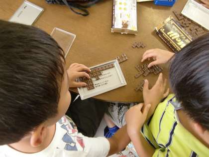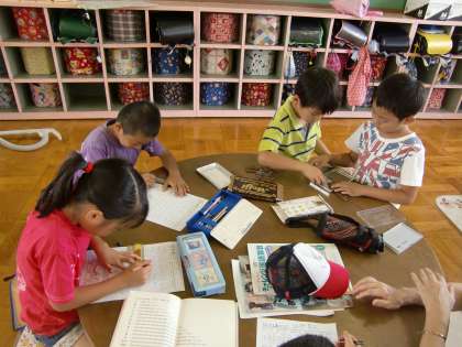宿題を懸命にやっている子,宿題をすでに終わらせて読書やパズルを楽しんでいる子,けん玉の特訓をしている子もいました。