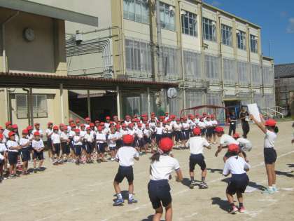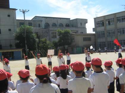 応援団の大きな声に導かれて,全員の声もよく出ていました。応援団の指示がきびきびしていたので,スムーズに練習できました。